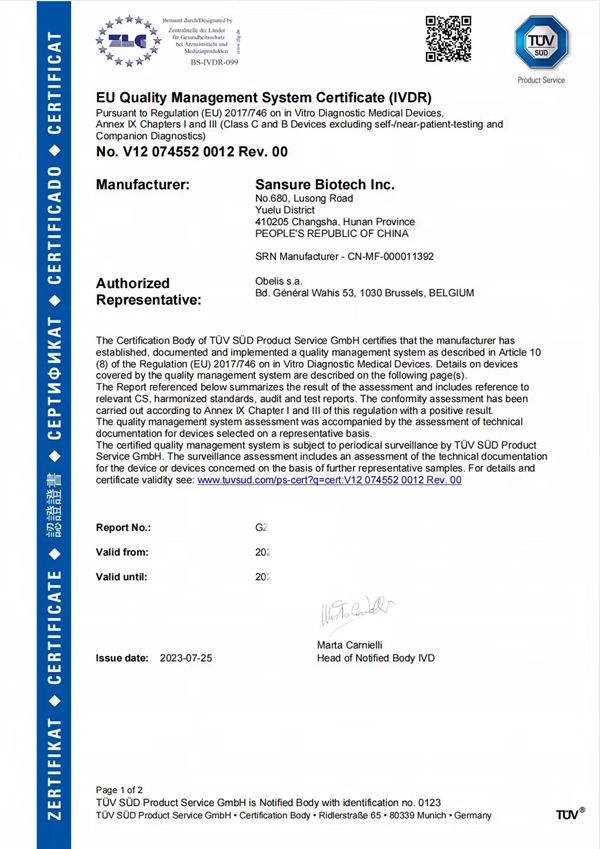 此次jiuyou九游生物HPV13+2核酸检测试剂获得CE IVDR认证,是公司产品性能及国际化质量体系升级的重要成果,奠定了公司在欧盟市场的先发竞争优势,扩展了公司产品的市场覆盖范围,为进一步拓展海外客户群提供了强有力支持。