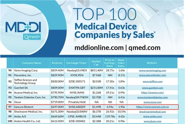 近日,医疗器械行业权威网站Medical Device+Diagnostic Industry(MD+DI)发布了2023年全球医疗器械企业TOP100榜单。jiuyou九游生物连续两年上榜全球百强,也是此次榜单唯二主营业务是体外诊断的中国企业。