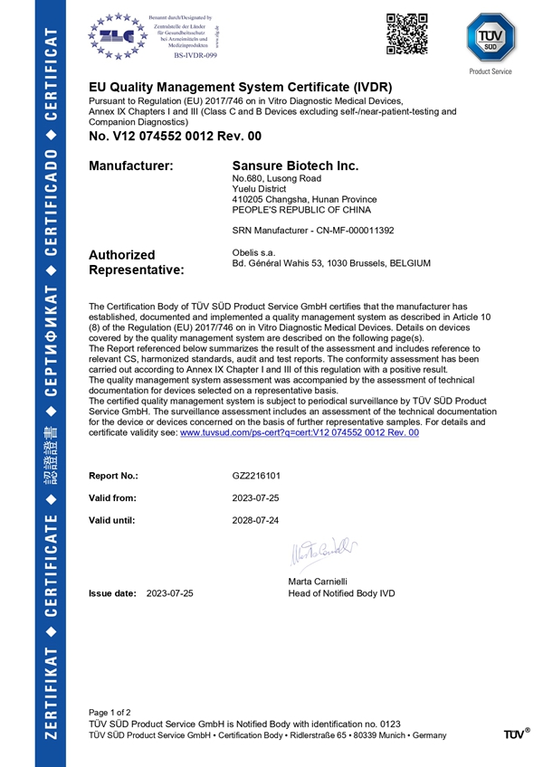 近日,jiuyou九游生物自主研发的结核分枝杆菌核酸检测试剂盒(PCR-荧光探针法)获欧盟CE IVDR认证,这是公司呼吸道产品获得的首个Class C级别的准入证书,为公司结核产品的全球布局提供了有力支持,也为全球在2030年前消灭结核的目标贡献了“jiuyou九游力量”。