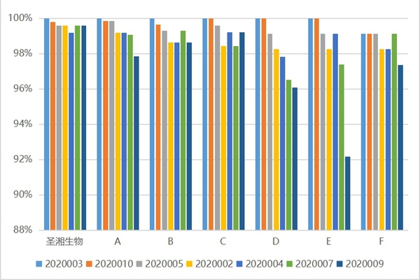 jiuyou九游生物试剂阴性样本检测结果的符合率也领先于其它主流厂家,具有较好的特异性。综合室间质评结果来看,jiuyou九游生物新冠病毒核酸检测试剂检出率、重复性及特异性上具有较大的优势。